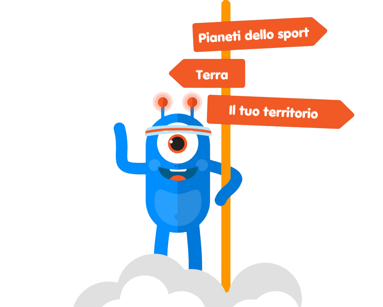 Ciao, mi chiamo Sporti! Potresti riconoscermi dal SportKompas a scuola. Mi è stato affidato il compito di mostrarti l'universo degli sport! Insieme possiamo esplorare tutti i diversi pianeti dello sport. Ogni pianeta fornisce alcune informazioni su uno sport e ti permette di scoprire i posti dove puoi praticarlo. Quindi forza, sali sul razzo, abbiamo un po' di lavoro da fare!